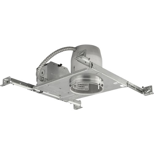 Progress Lighting P830-TG For new construction or remodel work. UL and CUL listed for damp locations. Junction box has integral Romex clamps, snap-out sides, and 1/2" & 3/4"pryouts. No Finish Adjustable from 1/2" to 2-1/2" thick ceilings. 4 In. New Construction Recessed Housing, Non-IC New construction recessed lighting housing. UL and CUL listed for damp locations and through wiring. Rated for use in uninsulated ceilings (non-IC) Adjustable hanger bars with nail grip for up to 24 in. spans with integral T-bar clamp Can be installed in ceilings from 1/2 in. to 2-1/2 in. thick Rated for 8 #12 90-deg conductors (4 in and 4 out) Select recessed housing and trim for complete fixture. Medium base lamp socket 7-7/8 In. Width x 10-3/4 In. Height, 4-1/2 in. ceiling opening