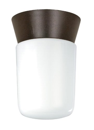 Bronzotic ceiling mount with white glass cylinder. (1) 60-Watt A19 medium base bulb not included.