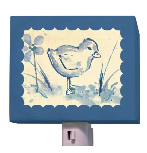 This Oopsy Daisy "Toile Chickie" nightlight brings a beautiful and simple image of a little chick in a garden; an attractive image in blue for your little nature lover's room. This nightlight can be easily wiped clean with a soft, dry cloth and is ideal for your child's room as it does not have a glass surface to break. You can personalize the nightlight with your child's name or any other word or phrase like "Good Night". This nightlight is designed by Heather Gentile Collins, whose biography is included with each unit. Features: Made up of canvas Personalized nightlight Easy to clean Dimension : 4.78" x 4" Made in the USA The Oopsy Daisy collection donates a portion of their annual sales to charities that directly assist children. This piece is custom made to order and ships directly from the designer.