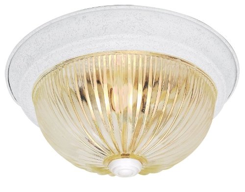 13-Inch textured white flush dome with clear ribbed glass. (2) 60-Watt A19 medium base bulbs not included.
