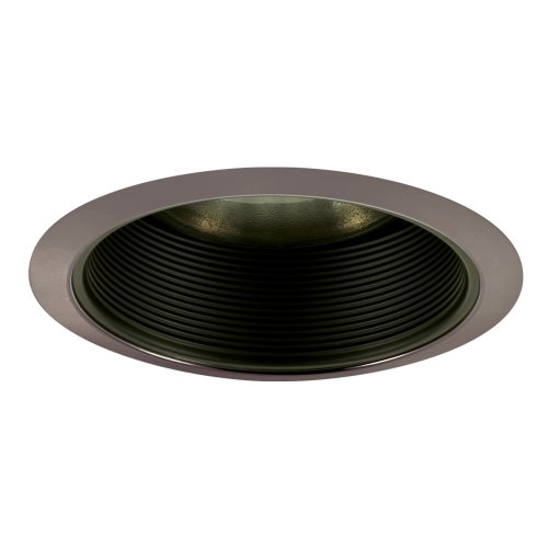 The Detailed Description of Jesco Lighting TM608BKST 6-Inch Aperture Line Voltage Trim Recessed Light, Step Baffled Trim, Black Finish With Satin Chrome TrimFeatures